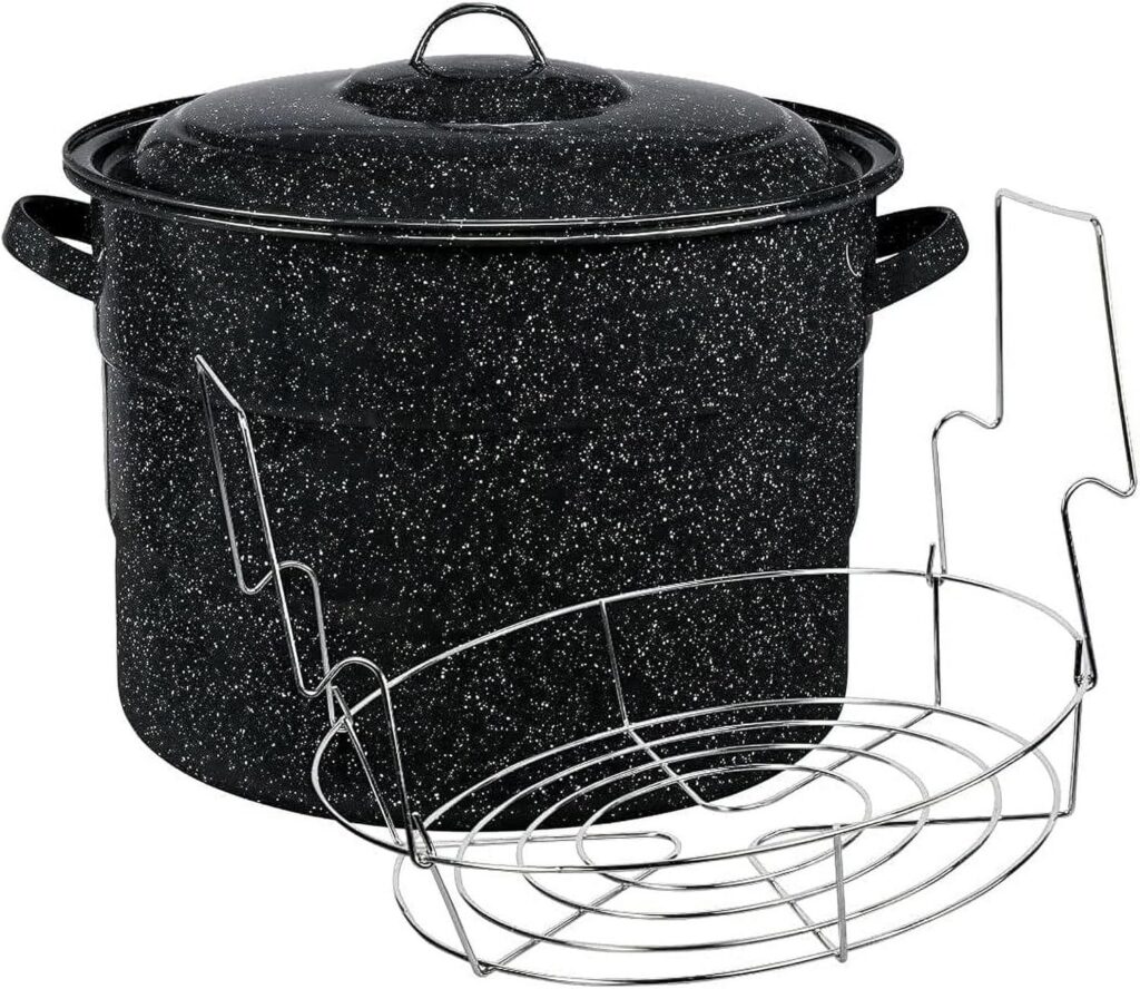 Water Bath Canner with Lid & Jar Rack 21.5-Quart Speckled Black